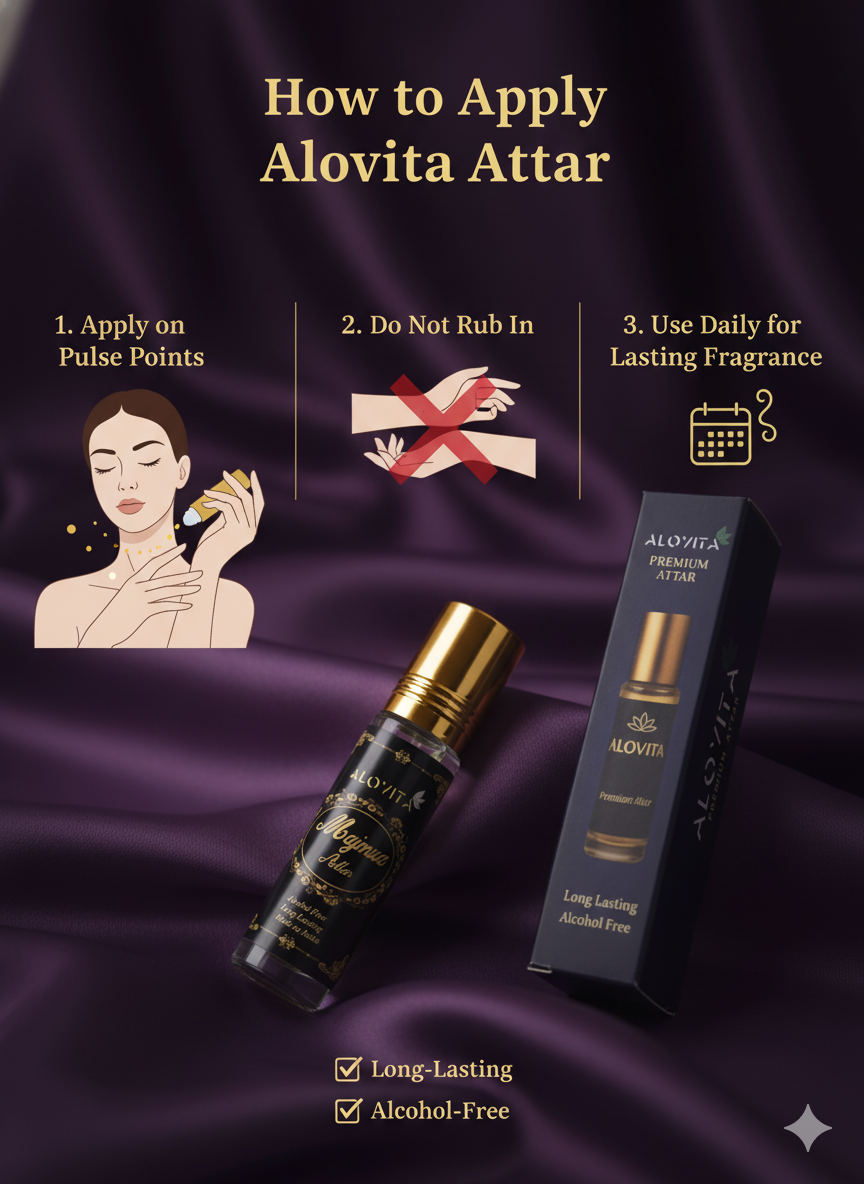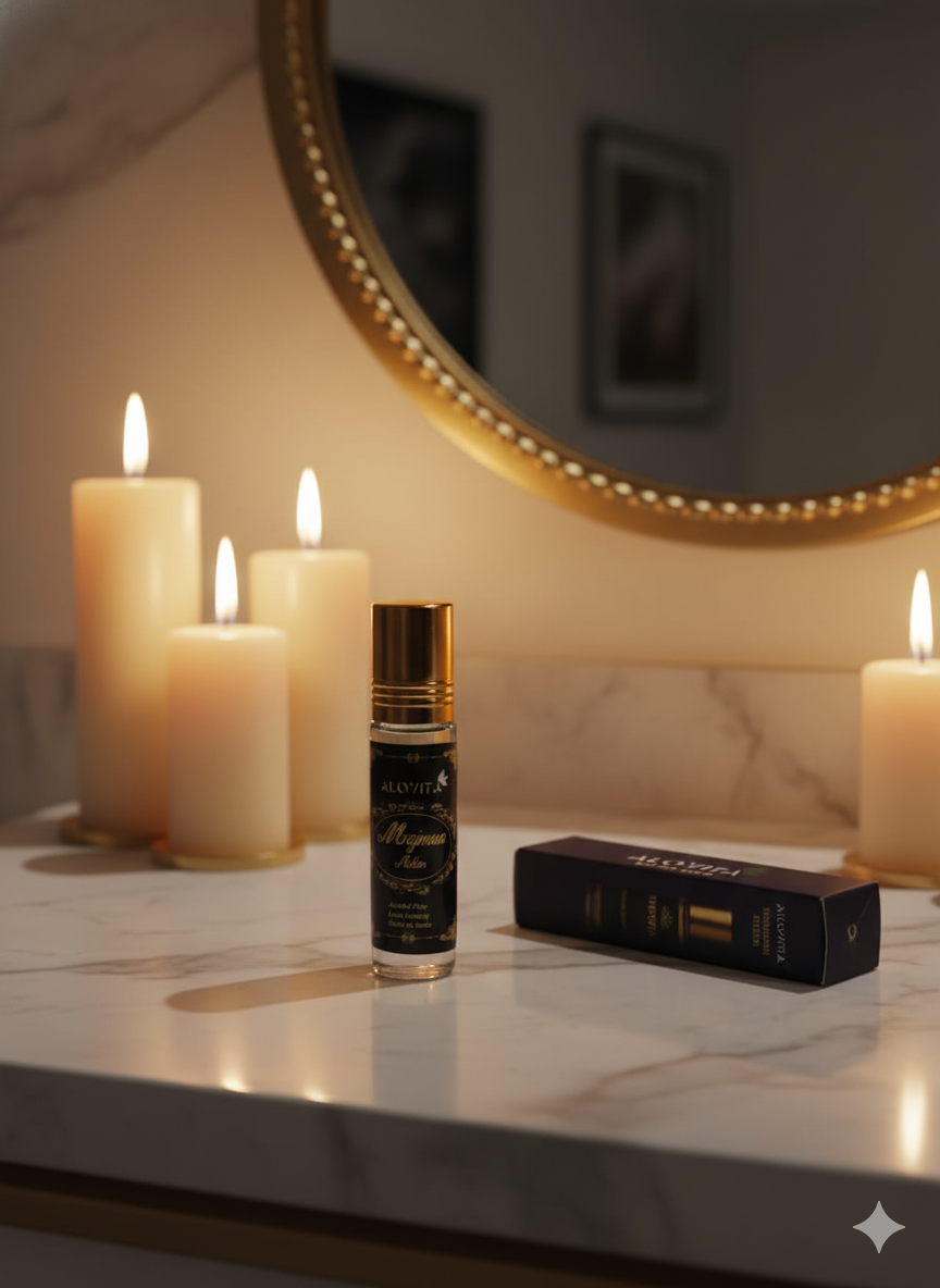 Transform your evening into a sanctuary. Alovita Premium Attar captures the warmth of candlelight and the mystery of the night. Designed for moments that matter, its aura lingers on the skin like a whispered secret.